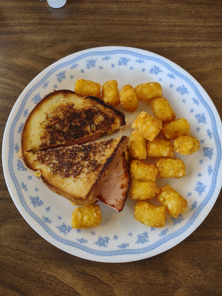 I was in town on business & needed a minute to make some phone calls. so I decided to check this place out because I thought it would be a quiet place to collect my thoughts & grab some lunch as well. we are all out in the middle of nowhere. don't get me wrong I absolutely LOVE the country. miss it very much! I stepped in the front door & an entire table full of locals turned to look at me. it was an awesome feeling! like I just walked into a strangers living room unexpectedly all I could think to say was "Hi" ... Ms Alicia popped her head out & told me to sit where I like. it was an easy pickin only because it's not a very big place. they have a great menu. breakfast things to make your heart putter. looking over the menu my eye kept roaming back to their Grilled Ham Cheese sandwich. so.. I got their Grilled Ham Cheese sandwich w/tots and my companion got the Chicken Fried Steak with Mashed Potatoes & Gravy, a biscuit & slices carrots. gotta tell ya... that was one of the best Grilled Ham Cheese sandwich and tots I've had in a long time! my partners meal was just as good. on my way out I complimented the cook. I had to give the atmosphere only 3 stars because it did lack what my partner & I consider just common courtesy around strangers in a business. but again, it did feel like I was sitting in amongst a family reunion lol but don't let that stop you from going to check out their food! lemme know what you think